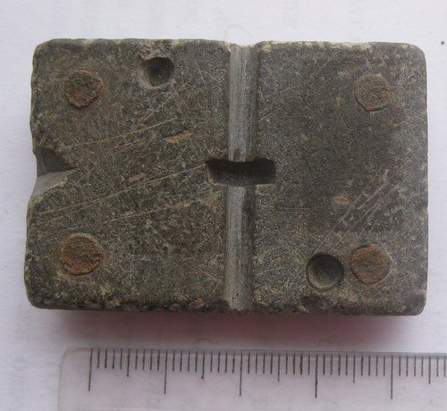 методом литья. Цельнолитые пуговицы, как правило, отливались в двух частях разъёмных каменных формах. Такие формы были найдены при раскопках древнерусских поселений. Пуговицы в то время 11-13 век были в виде гирек. Пуговицы так же в то время изготавливались в неразъёмных формах по резным восковым моделям. Некоторые спаивались из двух цельнолитых половинок. В дальнейшем появились пуговицы формы какими мы знаем их сейчас, то есть плоские с ушком, на лицевой части наносилось различное изображение, зачастую зверей ( лютый зверь ) , растительный орнамент ( цветок папоротника, многолепестковый цветок) . Материал применялся различный. Но в чистом виде практически не использовался. Свинец- наиболее простой металл, но очень мягкий по характеристикам, поэтому пуговицы из чистого олова применялись крайне редко. В древности олово, свинец и сурьму часто не отличали друг от друга, считая их разными видами одного и того же металла.